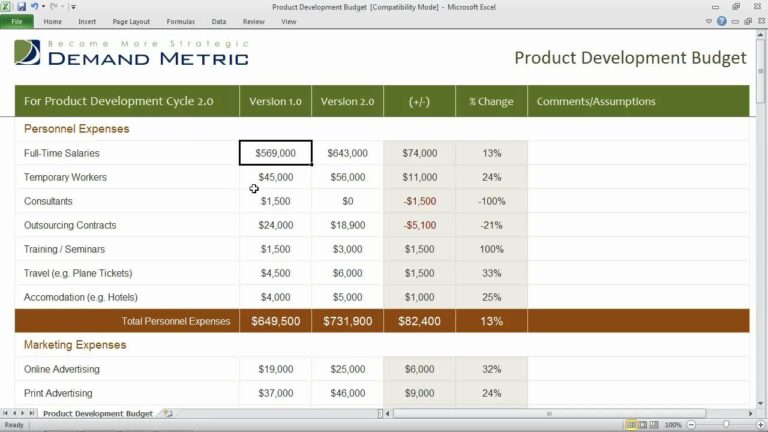 New Product Development Budget Template