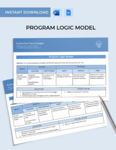 A logic model is an essential tool for program evaluation, and using a development planning template can simplify and enhance the process. By defining all the essential elements, a logic model provides a solid foundation for assessing program effectiveness and identifying areas for improvement.