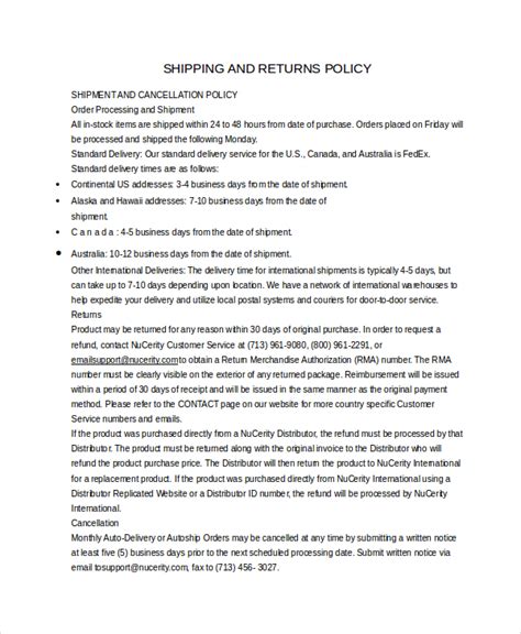 return and shipping policy template