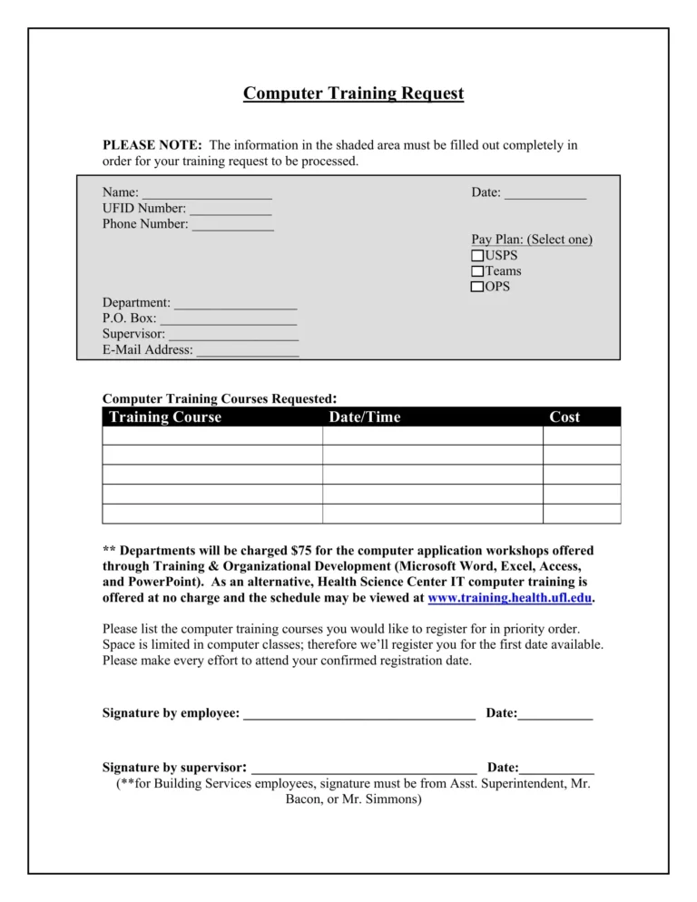 Utilizing a formal structure for training requests offers several advantages. Clear communication between employees and training departments reduces ambiguity and potential delays. Data gathered through these forms provides valuable insights into organizational training needs, informing budget allocation and program development. Standardized requests also contribute to fair and equitable access to development opportunities for all employees.